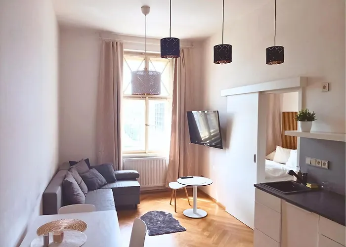 Bénéficiant d'installations de spa telles qu'un jacuzzi, Harmony Residence Prague est situé dans le quartier "Smíchov" à Prague, à 2 km du Pont Charles. Le domicile de 55 m² propose des équipements modernes, tels qu'un Wi-Fi et des éléments essentiels comme un parking privé gratuit pour les voyageurs en voiture.